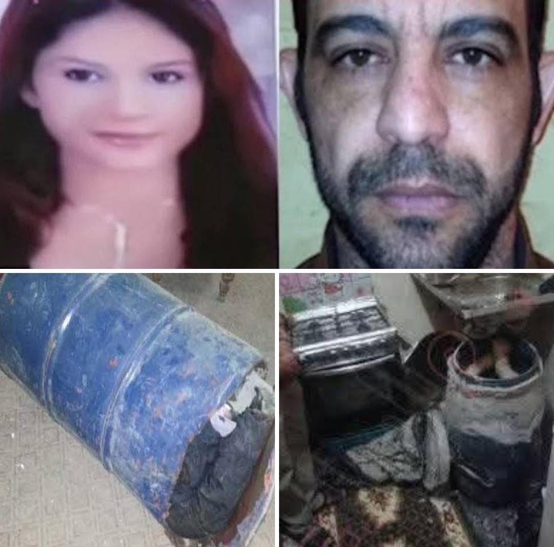 تم ك.سر الباب والدخول إلى الشىقة، وبدأ رجال الأمن في تتبع مصدر الرائحة داخل المكان الصامت. قادتهم الرائحة إلى الحمام، ليجدوا بابه هو الآخر محاطًا بالسيليكون بإحكام. ك.سر الباب، فإذا بهم أمام برميل أزرق كبير وثقيل يحتل مساحة الحمام، وبجواره حذاء نسائي تحيط به بقع د.م داكنة جافة. كان المشهد ينىذر بأن ما بداخل البرميل ليس أمرًا عاديًا.