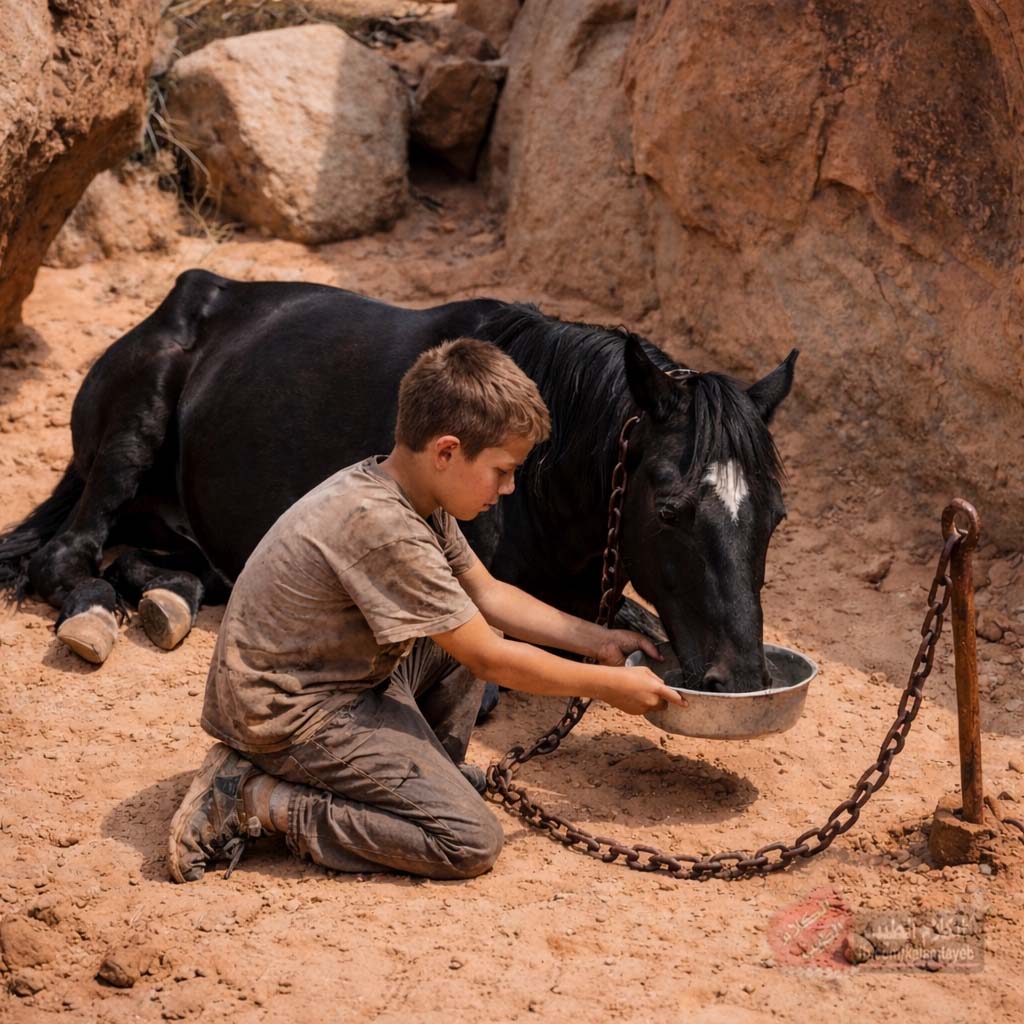 حصانٌ بسلسلة في الصحراء وطفل فقير… قصة حقيقية هزّت القلوب